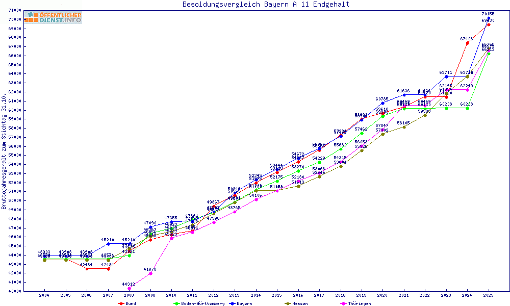 | Bayern | 70.155 € | +3467 € | +5.2% | 26 Jahre | ||||