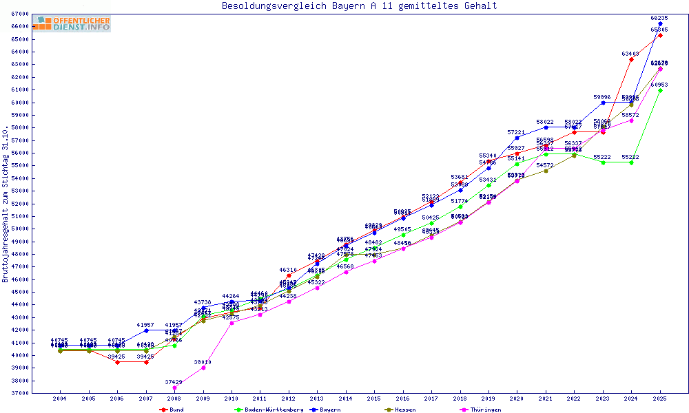 | Besoldungsvergleich A 11 im Jahr 2025 | gemitteltes Gehalt | ||||||