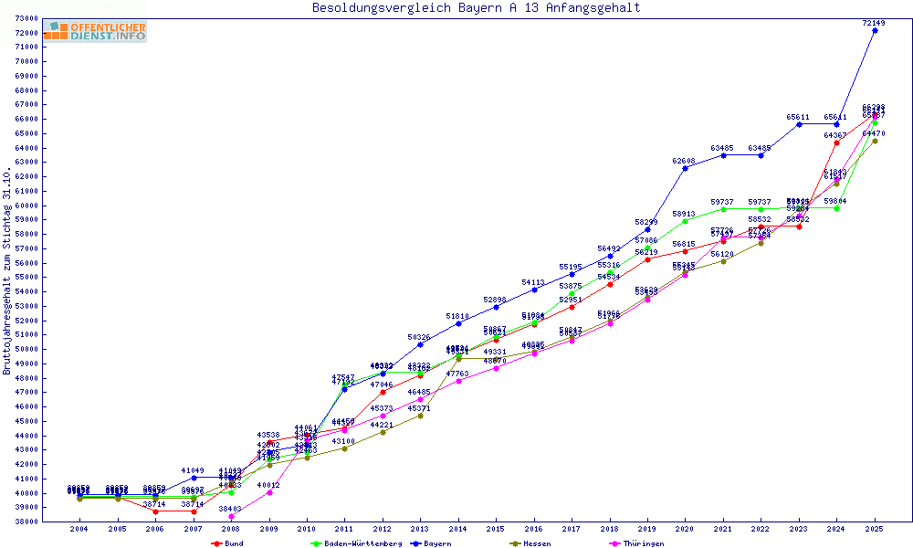 | Besoldungsvergleich A 13 im Jahr 2025 | Anfangsgehalt | ||||||