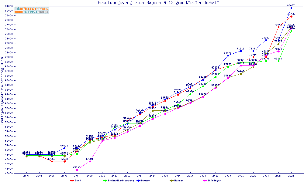 | Besoldungsvergleich A 13 im Jahr 2025 | gemitteltes Gehalt | ||||||