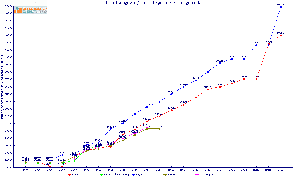 | Besoldungsvergleich A 4 im Jahr 2025 | Endgehalt | |||||||