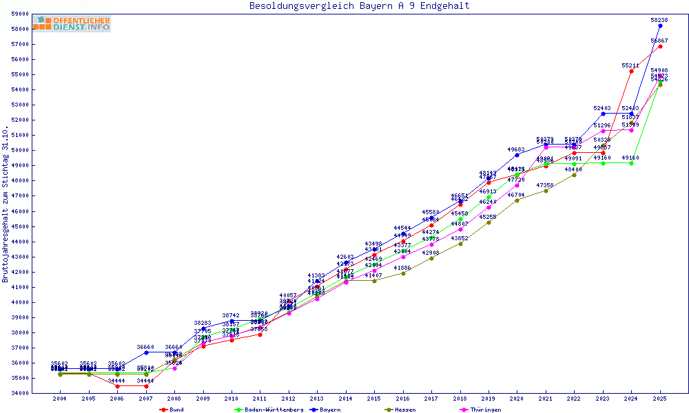 | Bayern | 58.238 € | +3084 € | +5.6% | 24 Jahre | ||||