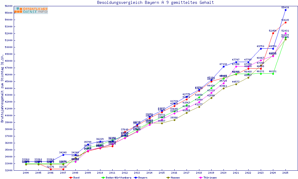 | Besoldungsvergleich A 9 im Jahr 2025 | gemitteltes Gehalt | ||||||