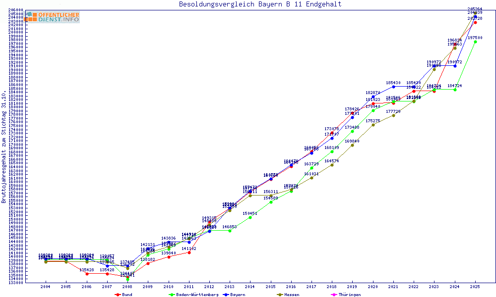 | Besoldungsvergleich B 11 im Jahr 2025 | gemitteltes Gehalt | ||||||