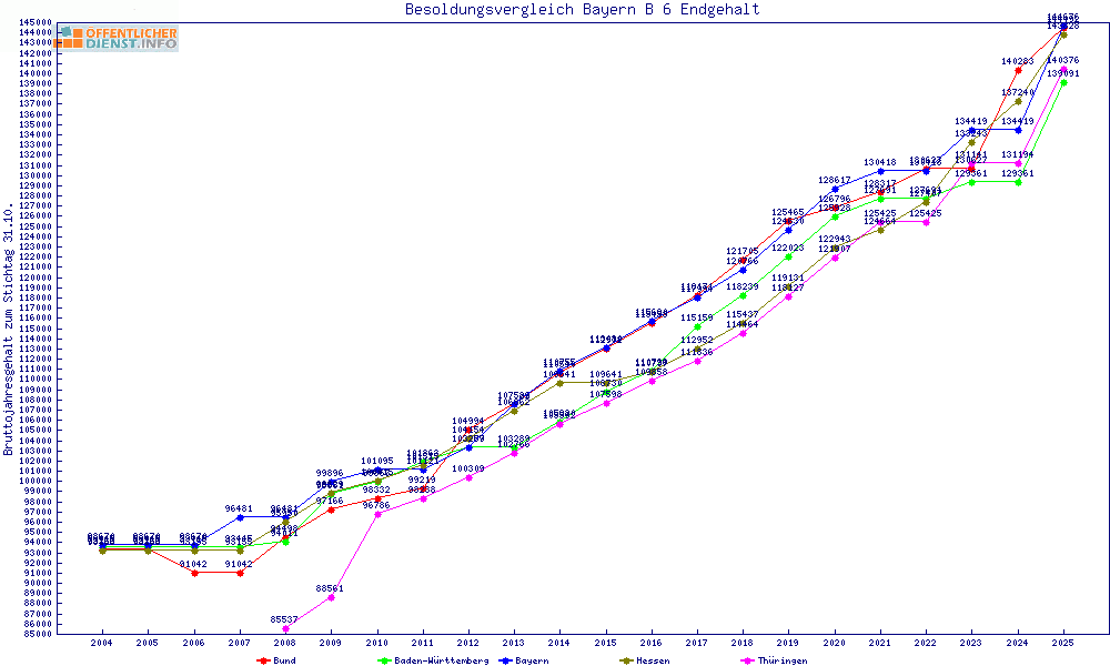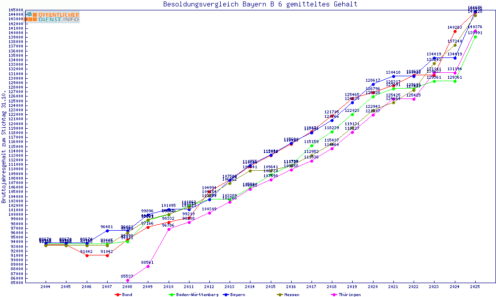 | Besoldungsvergleich B 6 im Jahr 2025 | gemitteltes Gehalt | ||||||