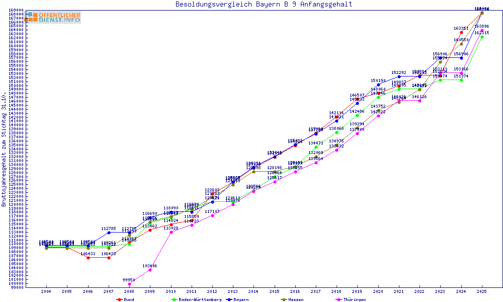 | Besoldungsvergleich B 9 im Jahr 2025 | Anfangsgehalt | ||||||