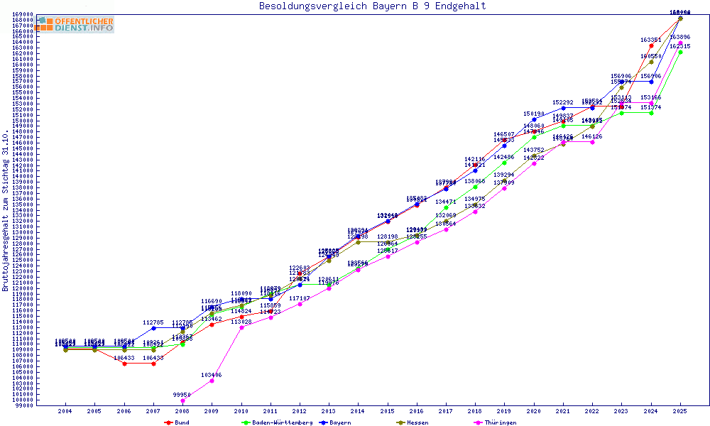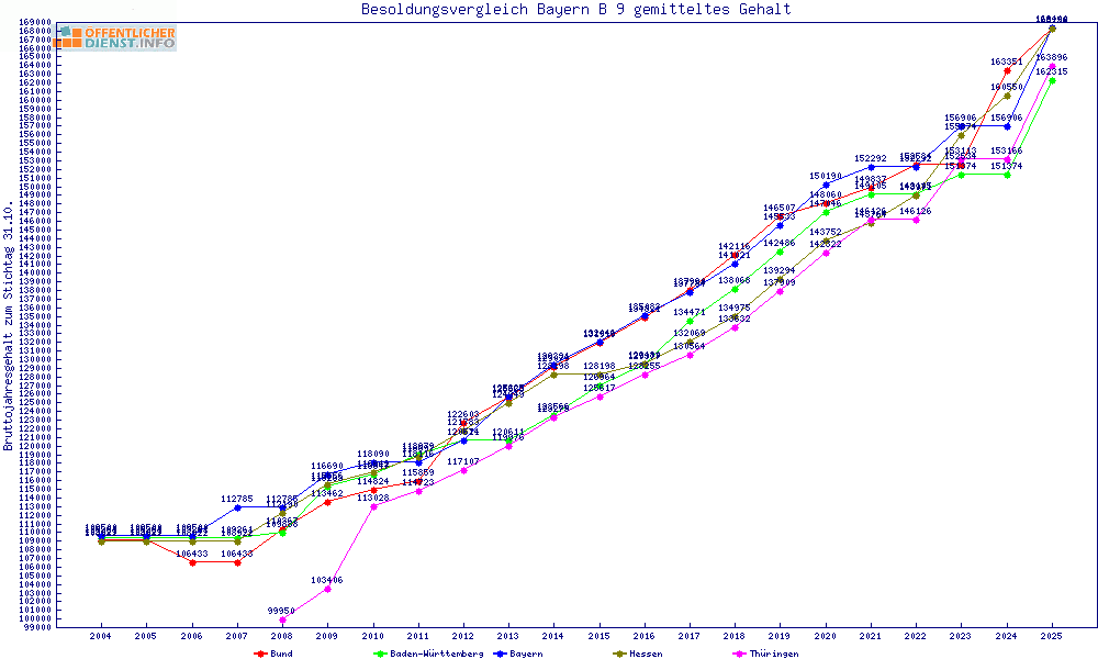 | Besoldungsvergleich B 9 im Jahr 2025 | gemitteltes Gehalt | ||||||