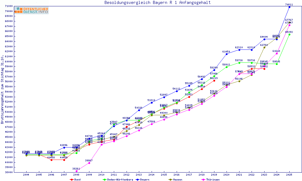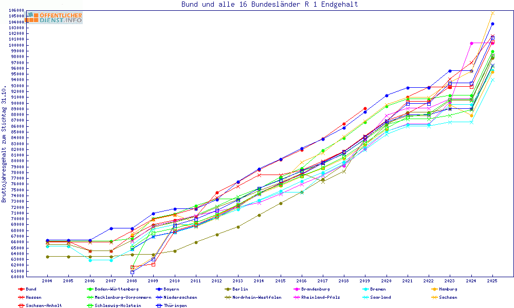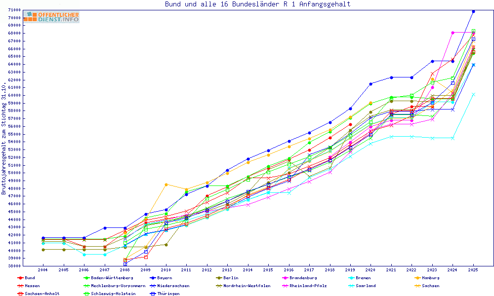 | Besoldungsvergleich R 1 im Jahr 2025 | Anfangsgehalt | ||||||