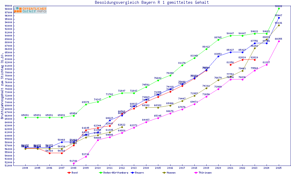 graphischer Besoldungsvergleich gemitteltes Gehalt aller Bundesländer