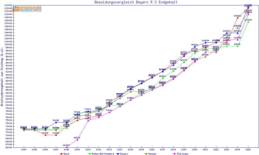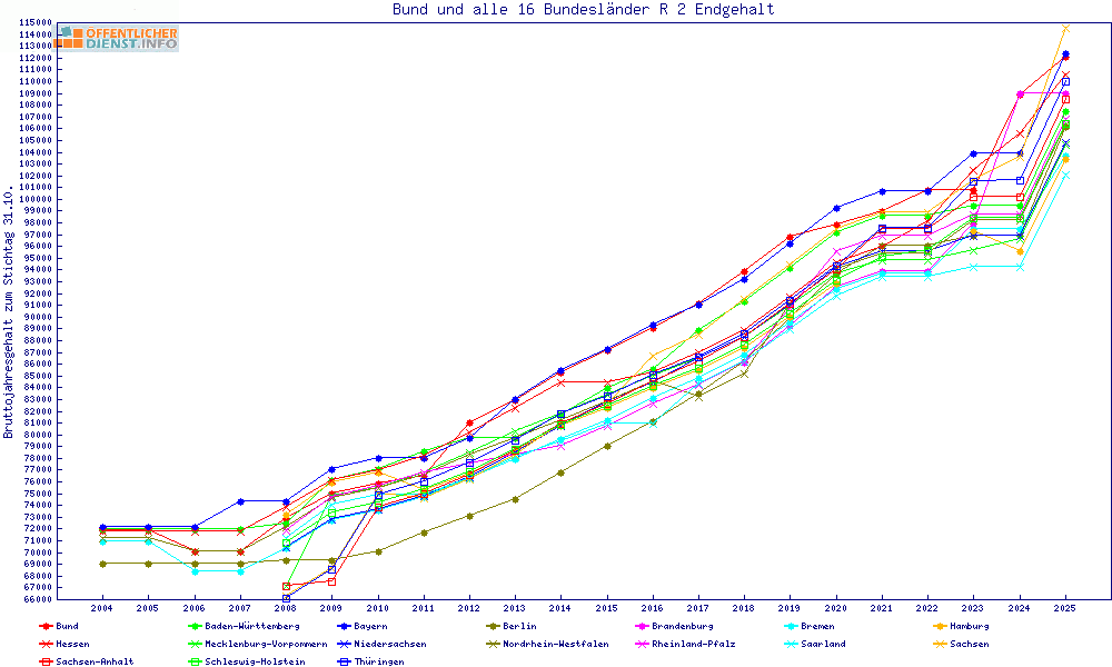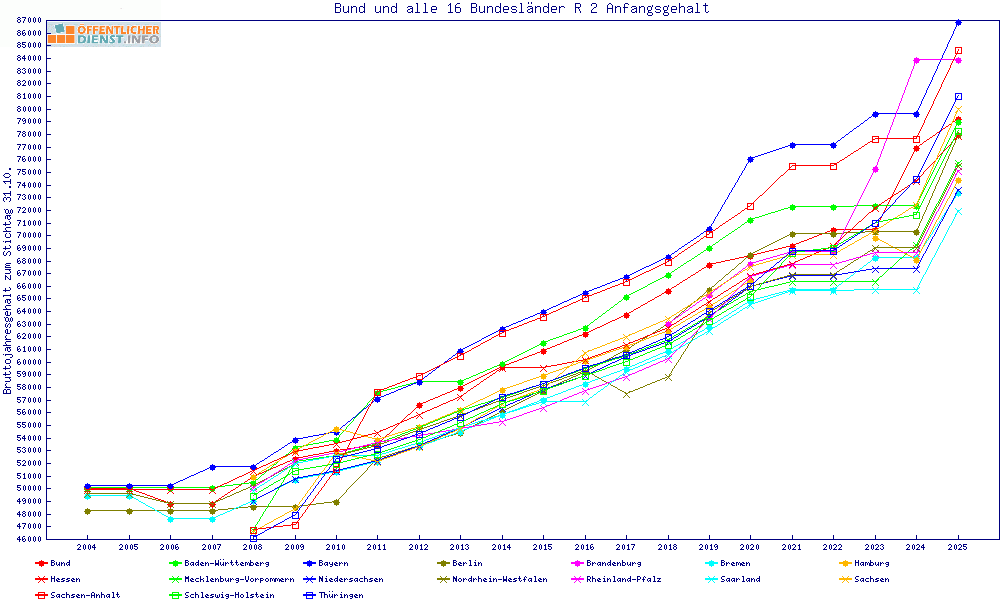 | Besoldungsvergleich R 2 im Jahr 2025 | Anfangsgehalt | ||||||
