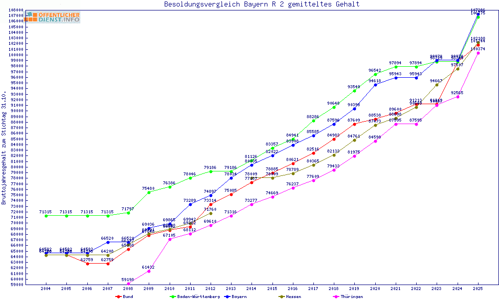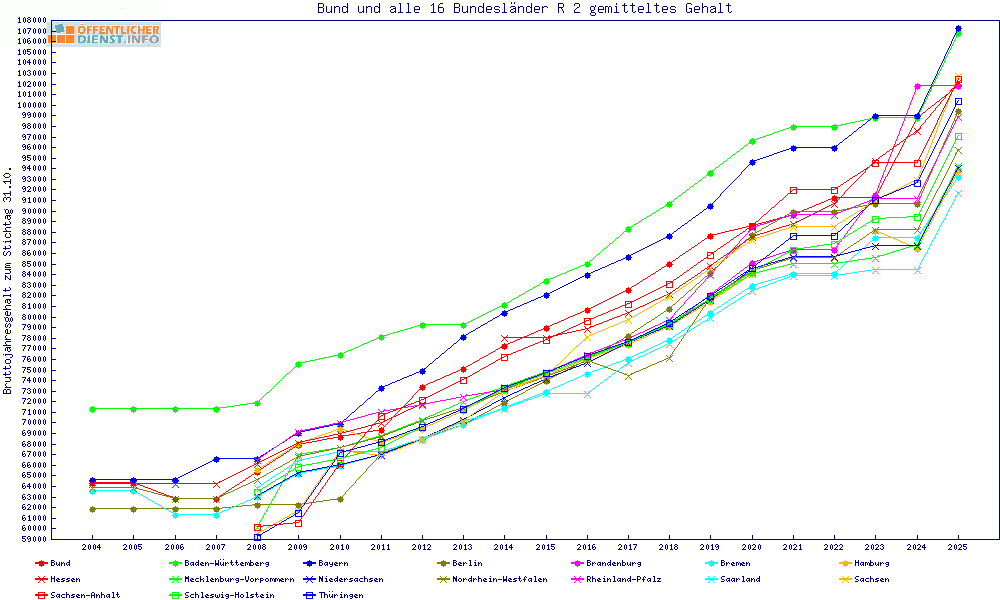 | Besoldungsvergleich R 2 im Jahr 2025 | gemitteltes Gehalt | ||||||