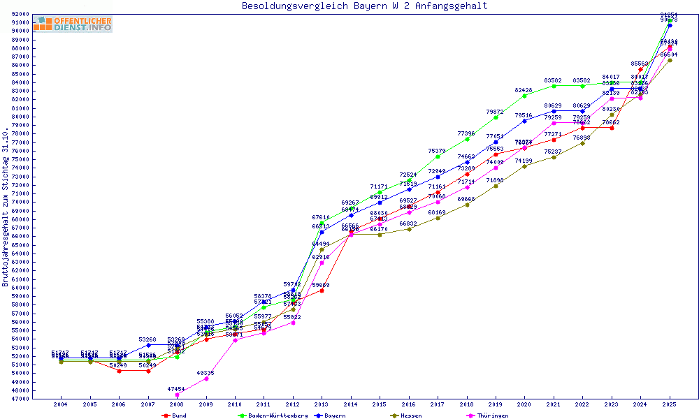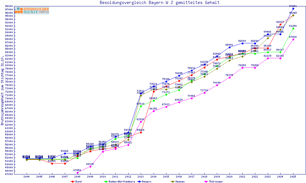 | Besoldungsvergleich W 2 im Jahr 2025 | gemitteltes Gehalt | ||||||