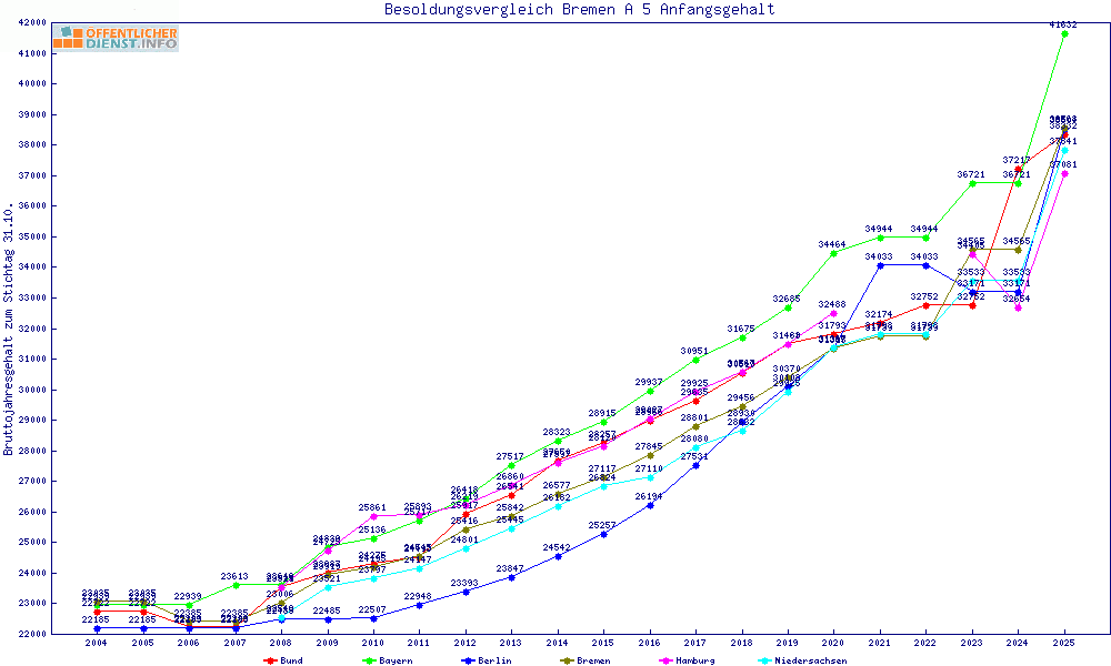 | Besoldungsvergleich A 5 im Jahr 2025 | Anfangsgehalt | ||||||