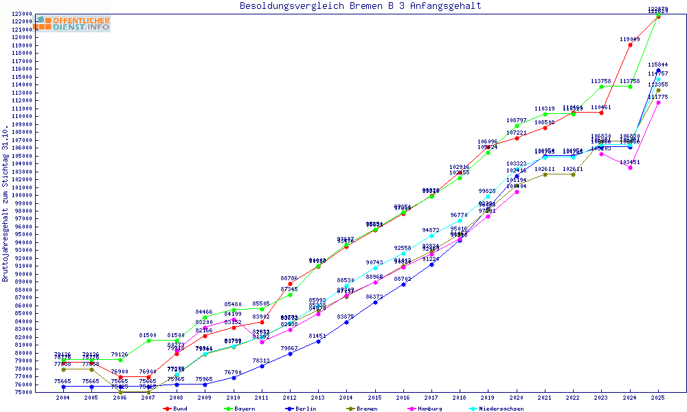 | Besoldungsvergleich B 3 im Jahr 2025 | Anfangsgehalt | ||||||