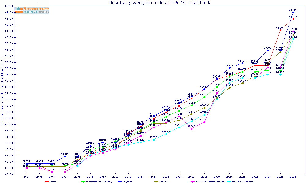 | Besoldungsvergleich A 10 im Jahr 2025 | gemitteltes Gehalt | ||||||