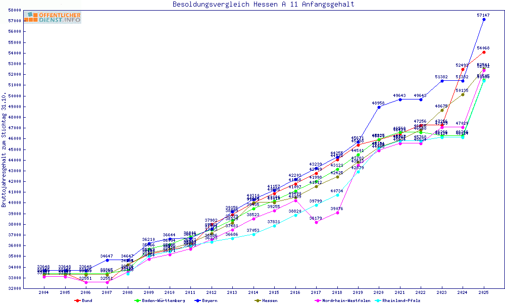 | Besoldungsvergleich A 11 im Jahr 2025 | Anfangsgehalt | ||||||