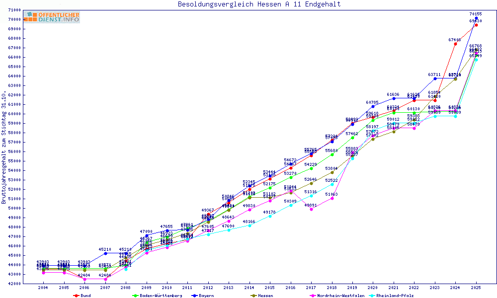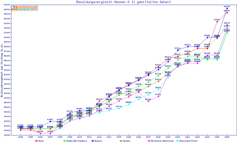 | Besoldungsvergleich A 11 im Jahr 2025 | gemitteltes Gehalt | ||||||