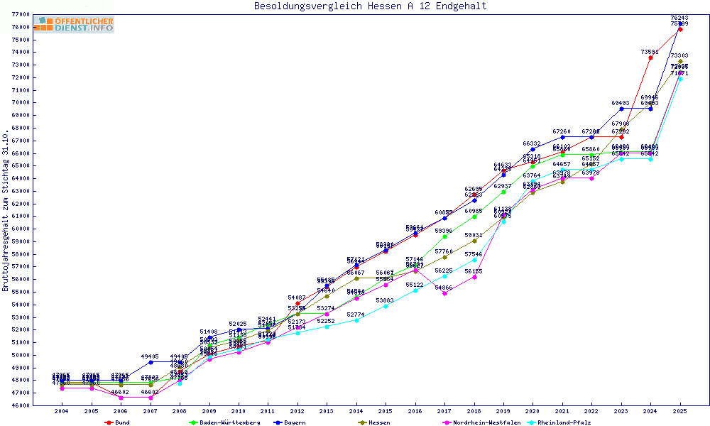 | Besoldungsvergleich A 12 im Jahr 2025 | gemitteltes Gehalt | ||||||