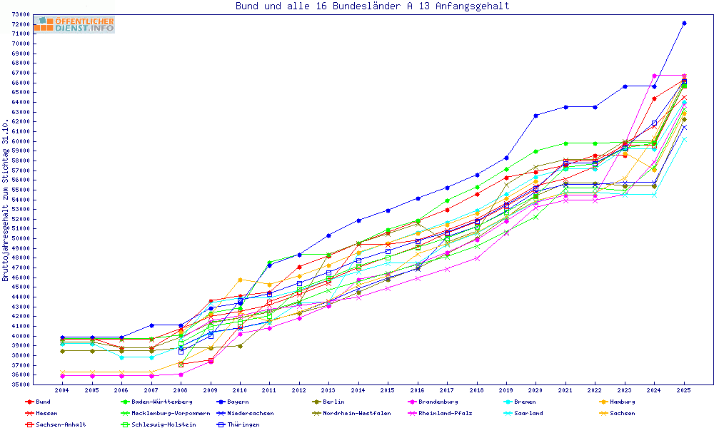 | Besoldungsvergleich A 13 im Jahr 2025 | Anfangsgehalt | ||||||