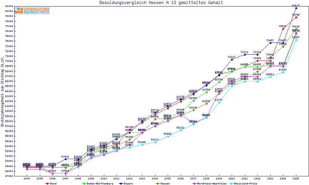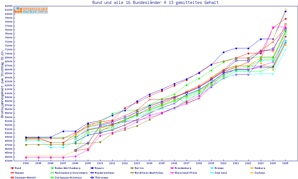 | Besoldungsvergleich A 13 im Jahr 2025 | gemitteltes Gehalt | ||||||