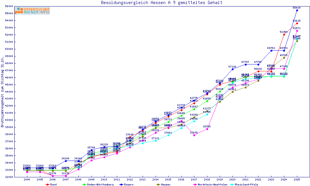 | Besoldungsvergleich A 9 im Jahr 2025 | gemitteltes Gehalt | ||||||