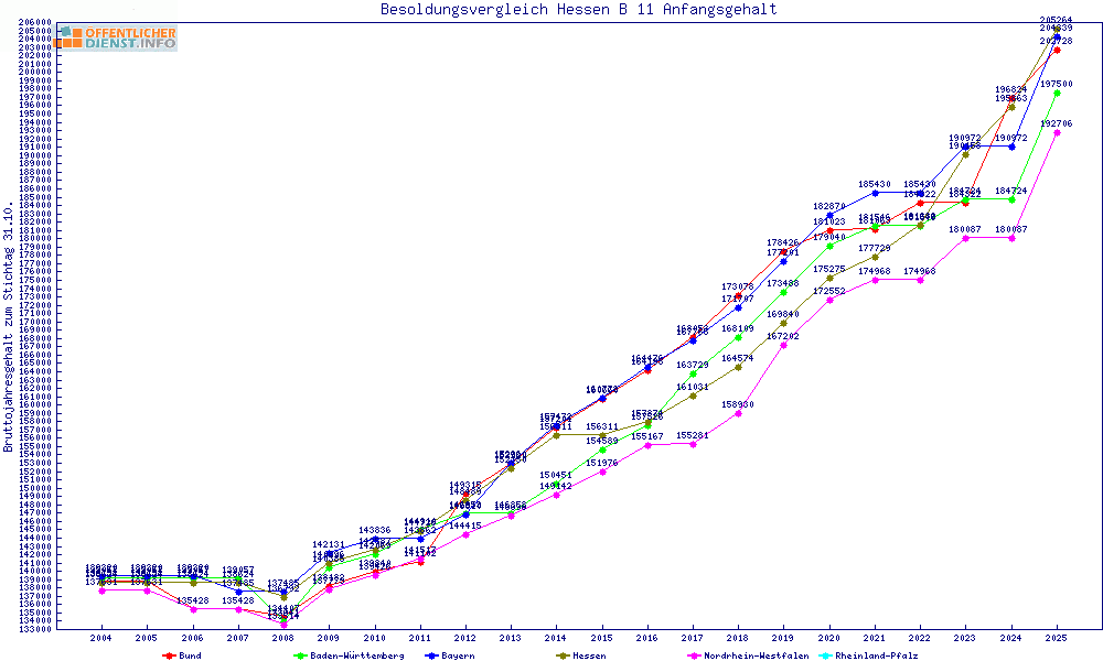 | Besoldungsvergleich B 11 im Jahr 2025 | Anfangsgehalt | ||||||