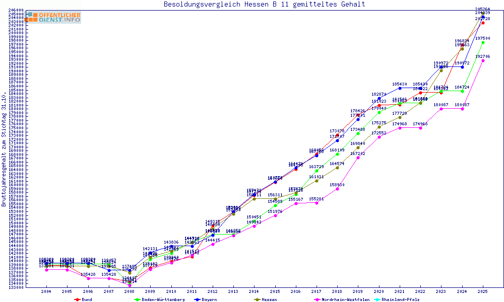| Besoldungsvergleich B 11 im Jahr 2025 | gemitteltes Gehalt | ||||||