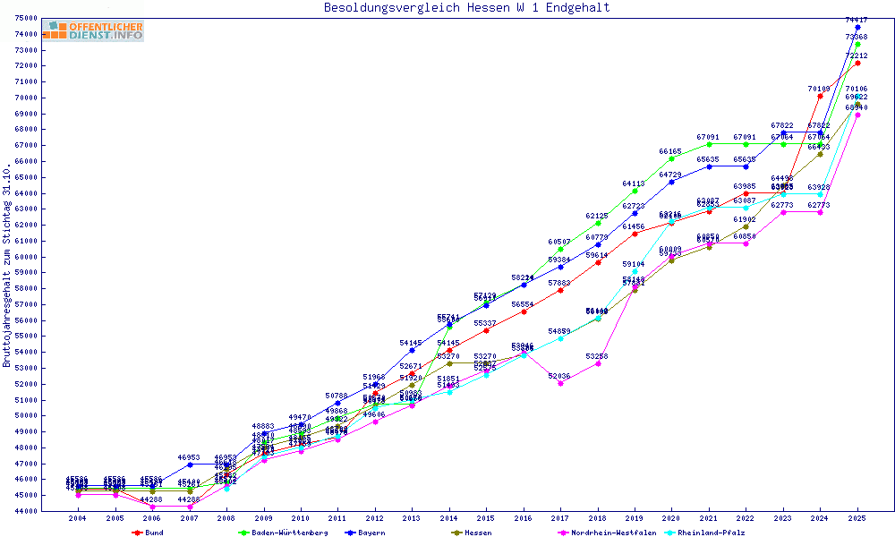 | Besoldungsvergleich W 1 im Jahr 2025 | Anfangsgehalt | ||||||