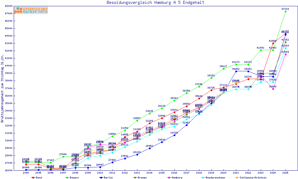 | Besoldungsvergleich A 5 im Jahr 2025 | Endgehalt | |||||||
