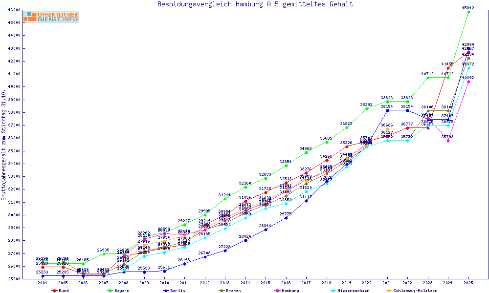 | Besoldungsvergleich A 5 im Jahr 2025 | gemitteltes Gehalt | ||||||