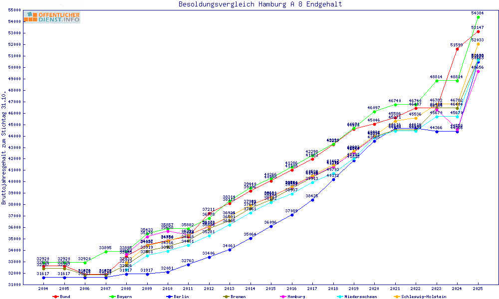 | Besoldungsvergleich A 8 im Jahr 2025 | Endgehalt | |||||||