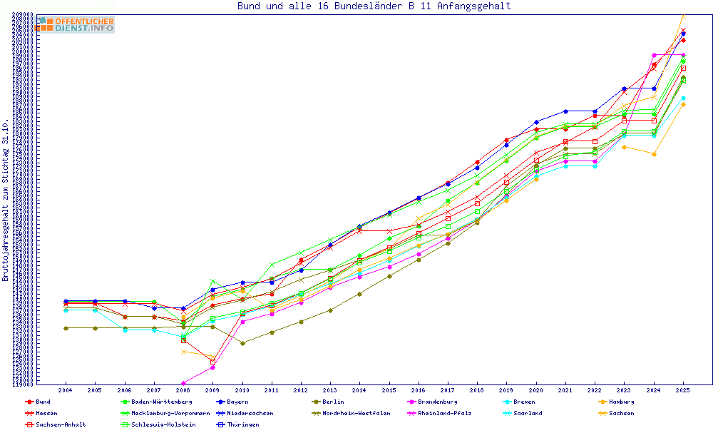 | Besoldungsvergleich B 11 im Jahr 2025 | Anfangsgehalt | ||||||