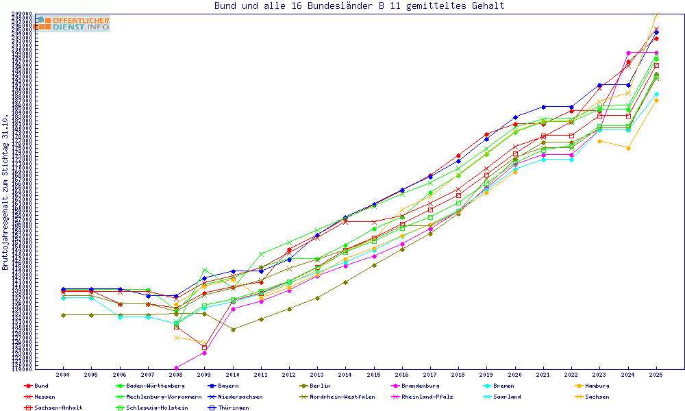 | Besoldungsvergleich B 11 im Jahr 2025 | gemitteltes Gehalt | ||||||