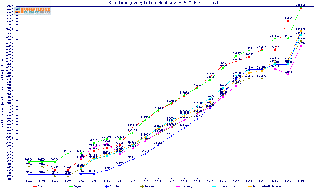 | Besoldungsvergleich B 6 im Jahr 2025 | Anfangsgehalt | ||||||