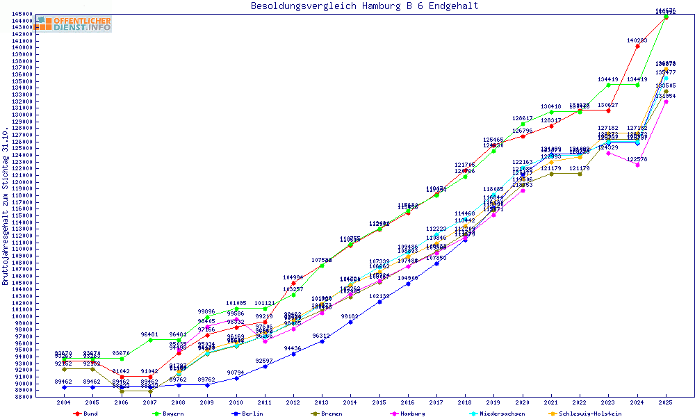 | Besoldungsvergleich B 6 im Jahr 2025 | Endgehalt | |||||||