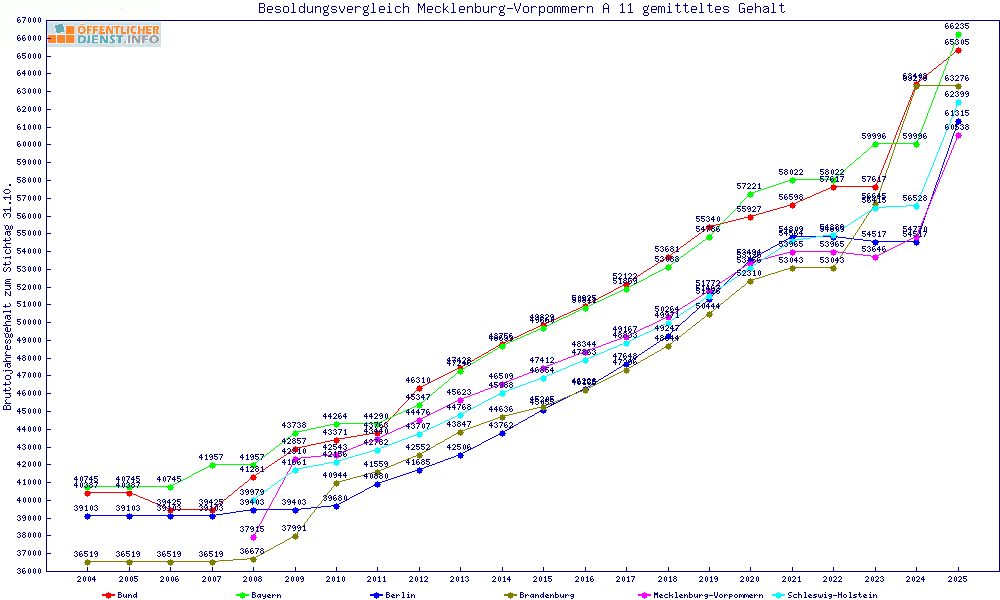 | Besoldungsvergleich A 11 im Jahr 2025 | gemitteltes Gehalt | ||||||