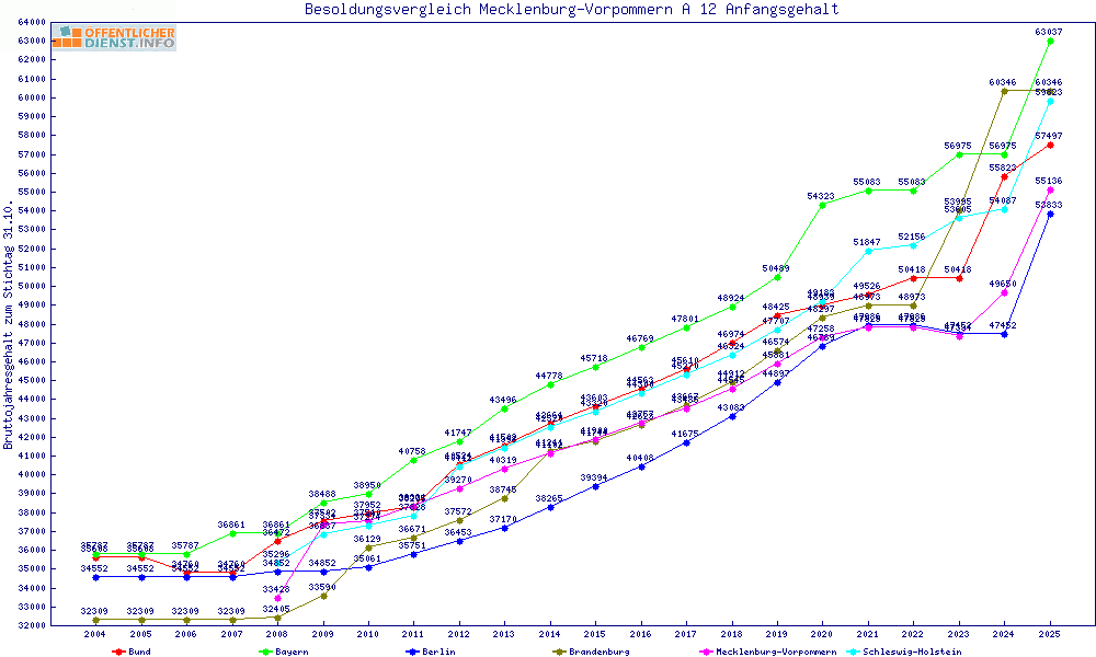 | Besoldungsvergleich A 12 im Jahr 2025 | Anfangsgehalt | ||||||