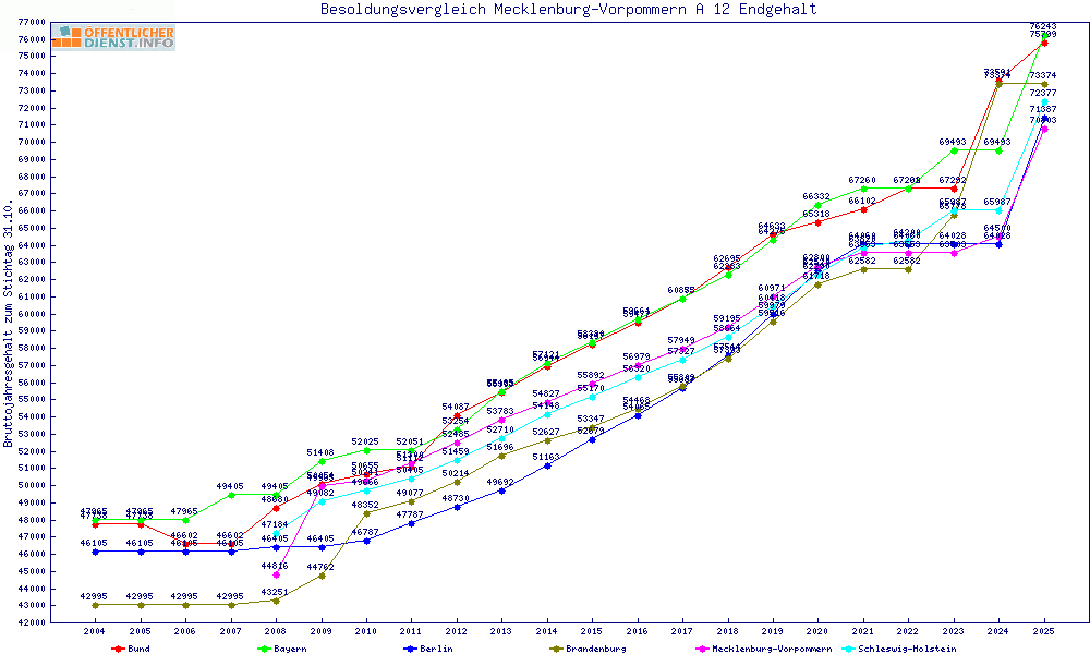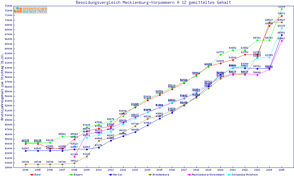 | Besoldungsvergleich A 12 im Jahr 2025 | gemitteltes Gehalt | ||||||