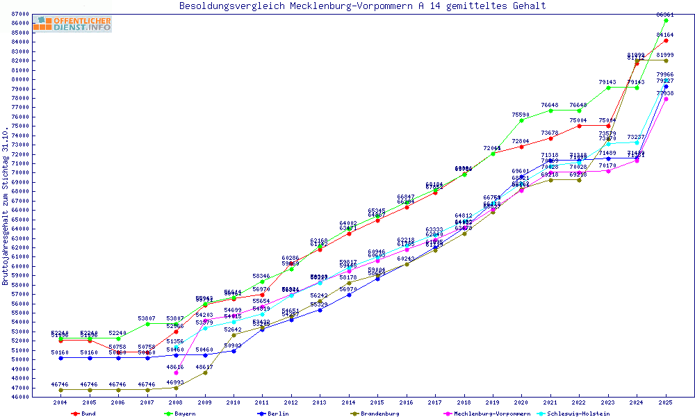 | Besoldungsvergleich A 14 im Jahr 2025 | gemitteltes Gehalt | ||||||