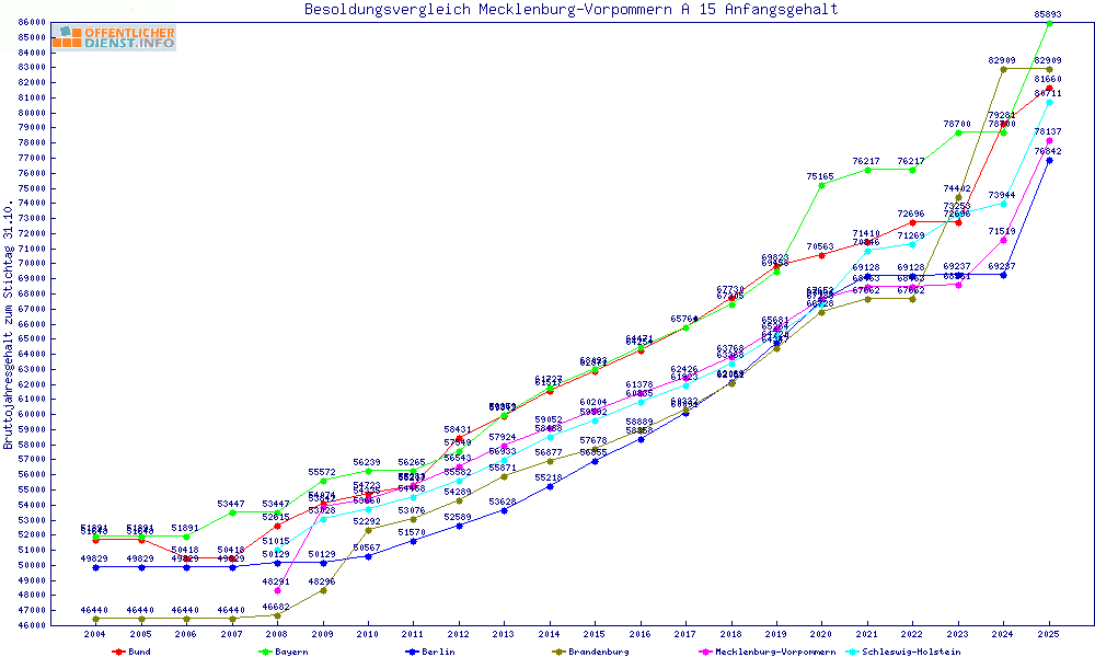 | Besoldungsvergleich A 15 im Jahr 2025 | Anfangsgehalt | ||||||