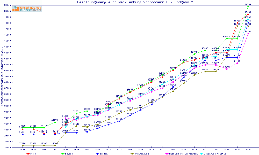 | Besoldungsvergleich A 7 im Jahr 2025 | Endgehalt | |||||||