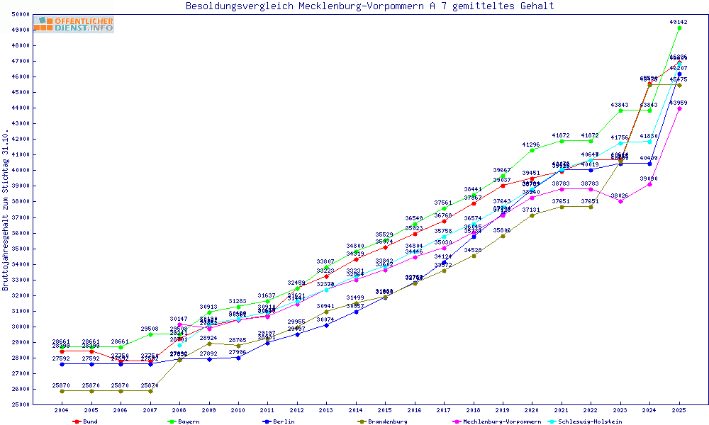 | Besoldungsvergleich A 7 im Jahr 2025 | gemitteltes Gehalt | ||||||