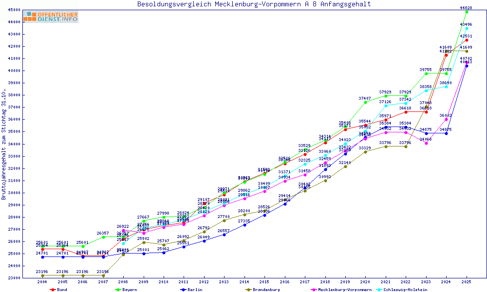 | Besoldungsvergleich A 8 im Jahr 2025 | gemitteltes Gehalt | ||||||