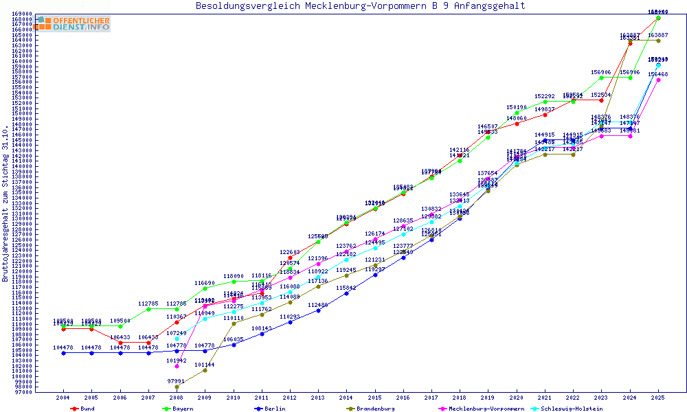 | Besoldungsvergleich B 9 im Jahr 2025 | gemitteltes Gehalt | ||||||