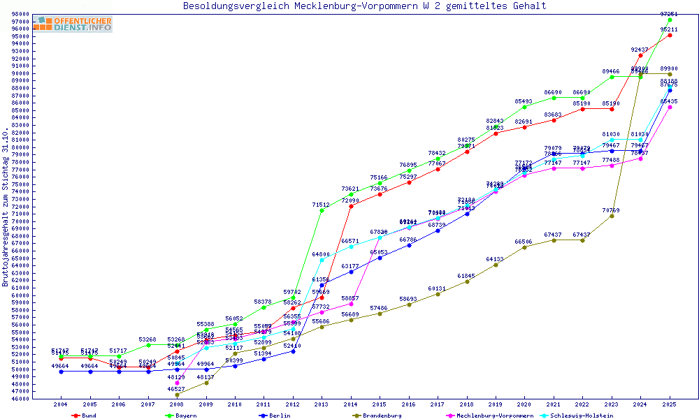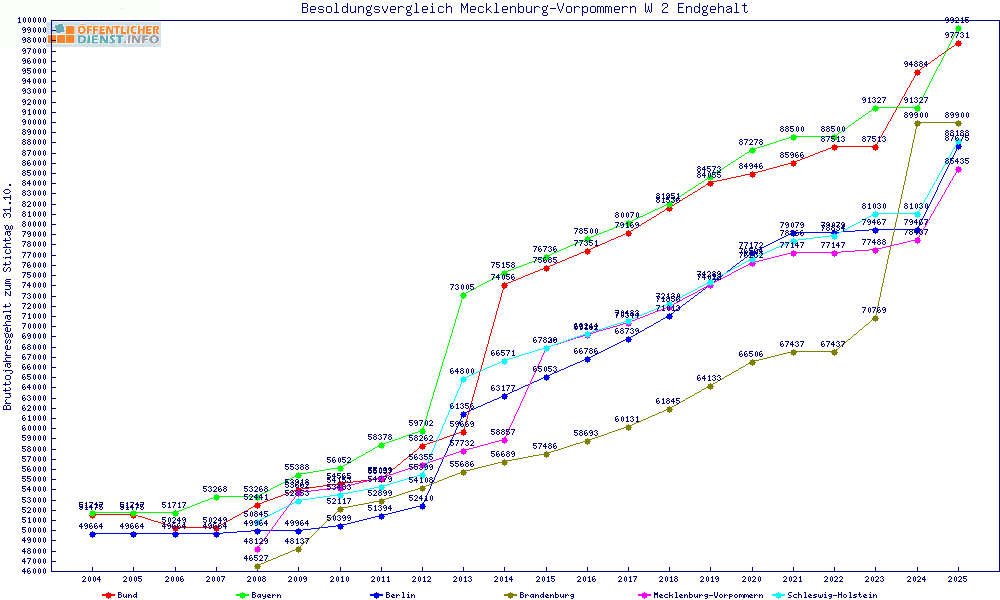 | Sachsen | 87.990 € | +2554 € | +3.0% | +1749 € | +2.0% | ||