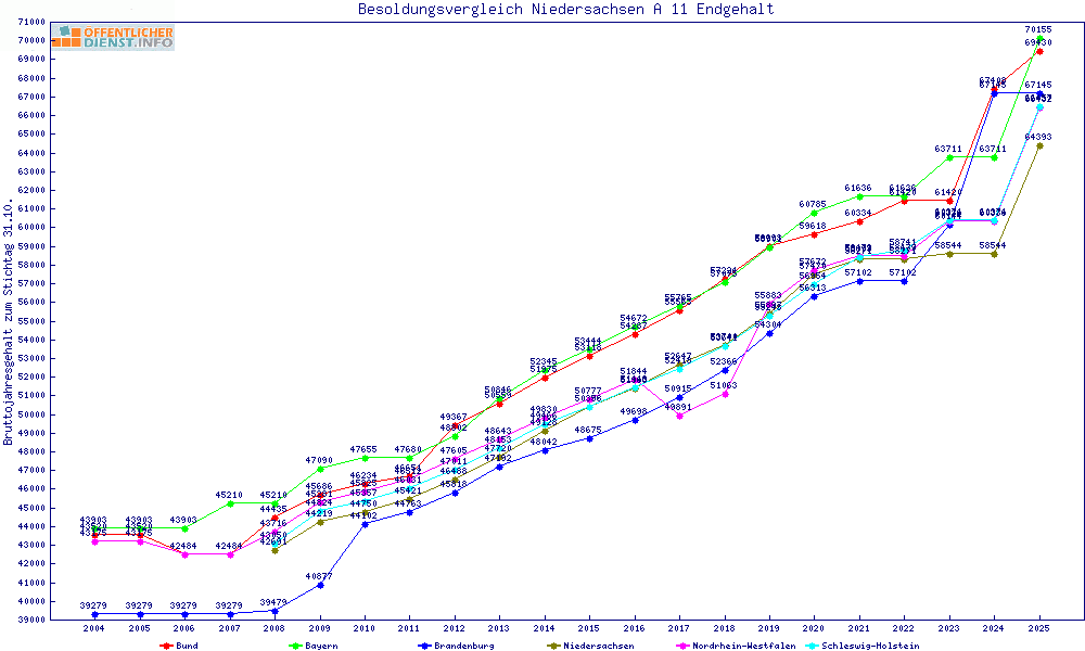 | Besoldungsvergleich A 11 im Jahr 2025 | gemitteltes Gehalt | ||||||
