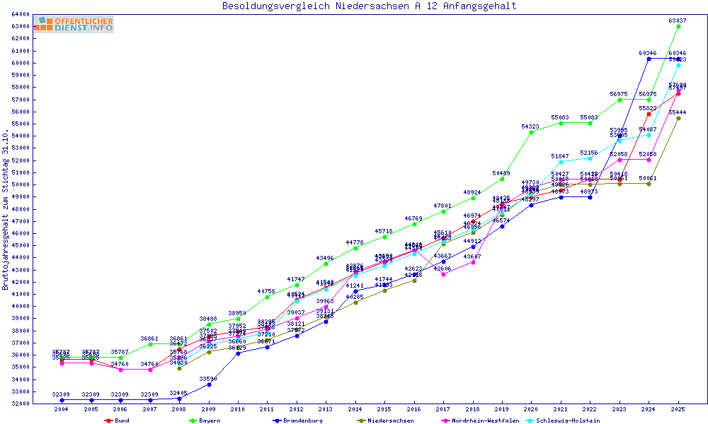 | Besoldungsvergleich A 12 im Jahr 2025 | Anfangsgehalt | ||||||