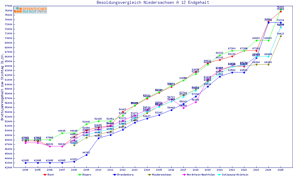 | Besoldungsvergleich A 12 im Jahr 2025 | gemitteltes Gehalt | ||||||
