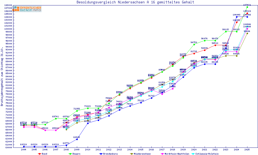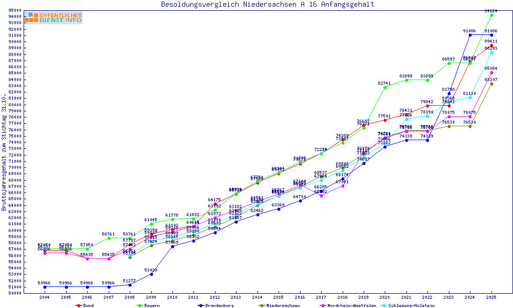 | Besoldungsvergleich A 16 im Jahr 2025 | Anfangsgehalt | ||||||