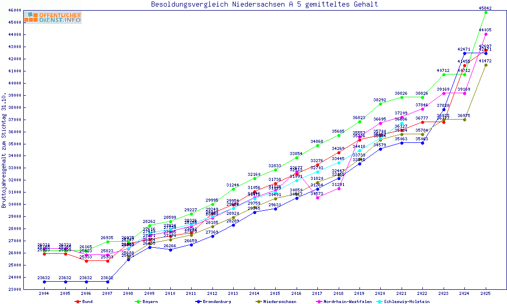 | Besoldungsvergleich A 5 im Jahr 2025 | gemitteltes Gehalt | ||||||